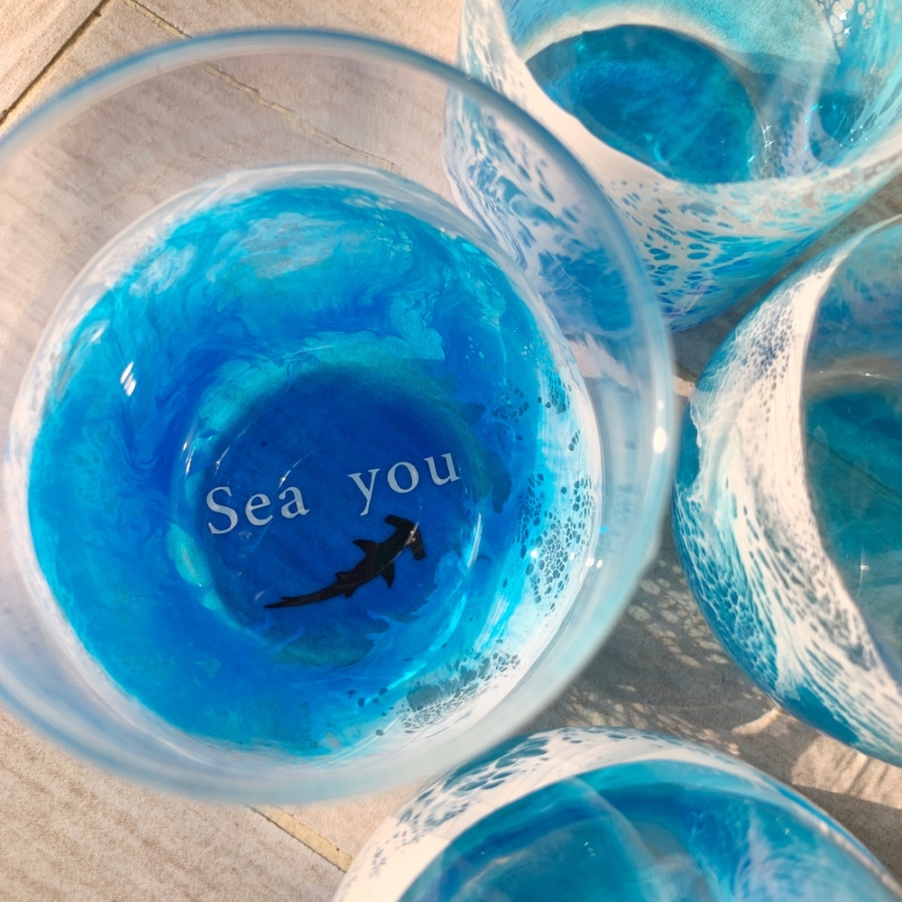 玻璃杯 + 樹酯海浪